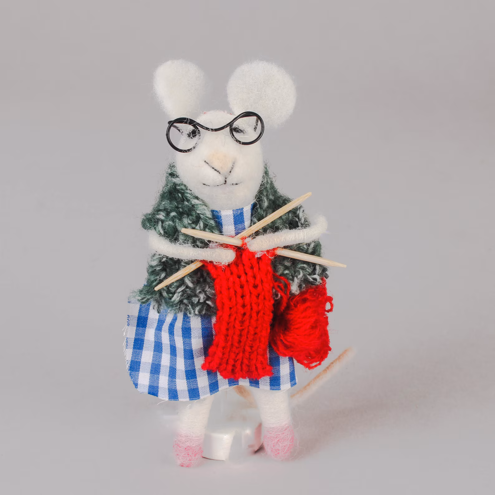 Add a touch of handmade warmth to your home with this adorable Felt Knitting Lady Mouse, an artistic piece that will bring joy and charm to your home for years to come.